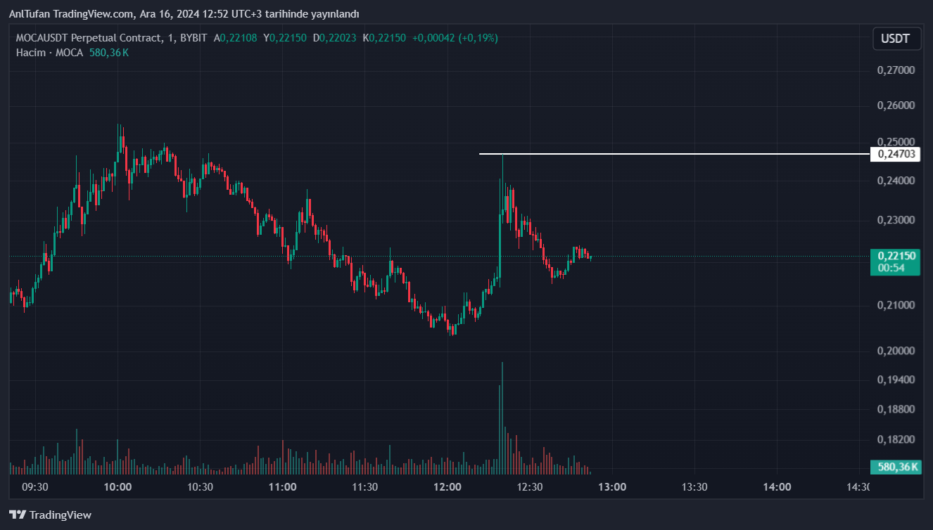 Bu son gelen vadeli listeleme duyurusuyla birlikte MOCA tekrardan yükselişe geçti. Her ne kadar popüler altcoin Binance’in listeleme hamlesi sonrası %15’lik bir artış yaşasa da, dakikaların ilerlemesiyle bu yükselişlerin önemli bir kısmını kaybetti.