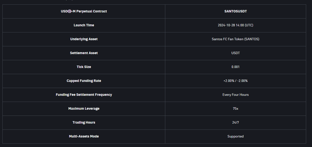 Popüler kripto para borsası Binance, SANTOS vadeli listeleme duyurusunda başlıca şu bilgileri aktardı: