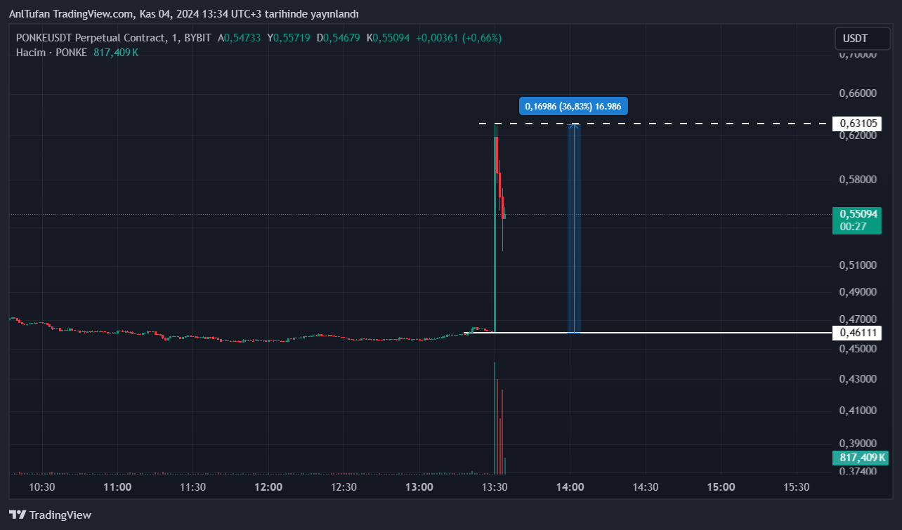 Son gelen bu duyuru ile birlikte PONKE’nin de büyük bir sıçrama yaptığı görüldü. Dakikalar içerisinde %40’a yakın artış yaşayan PONKE, yatırımcıların dikkatini çekti.