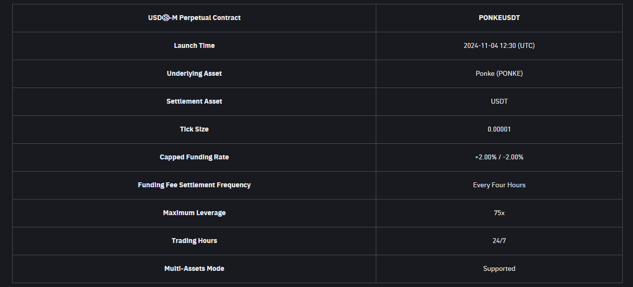 Popüler kripto para borsası Binance, PONKE vadeli listeleme duyurusunda başlıca şu bilgileri aktardı: