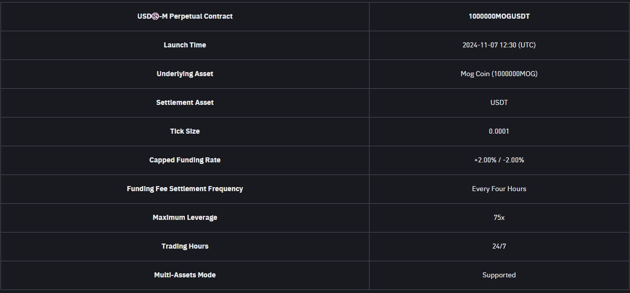 Popüler kripto para borsası Binance, MOG vadeli listeleme duyurusunda başlıca şu bilgileri aktardı: