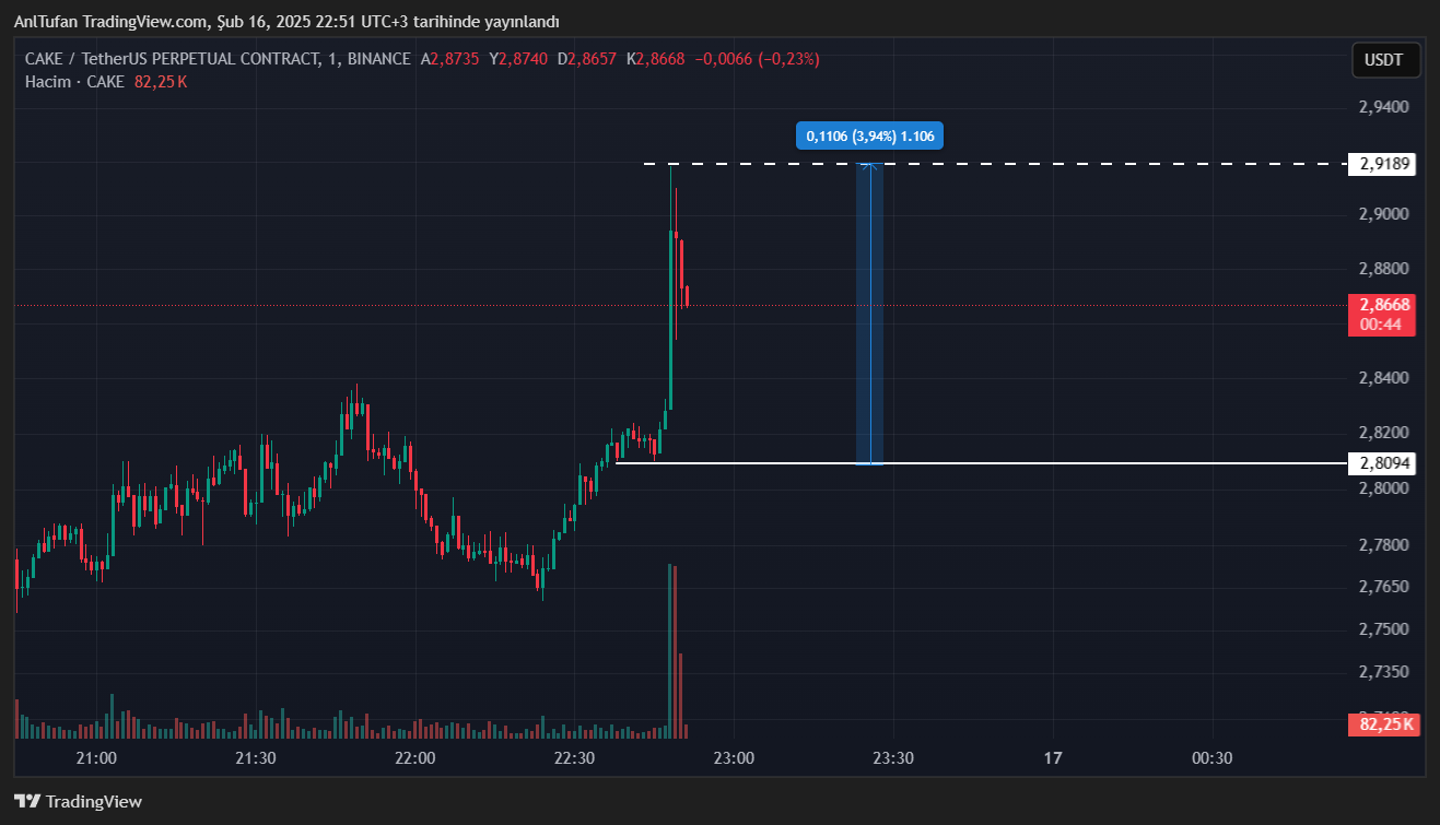 Bu son gelişmeler ışığında CAKE fiyatında yükseliş yaşandı. Kısa bir süre içerisinde %4’lük bir artış yaşayan CAKE, son 2 gün içerisinde ise %20 oranında değer kazandı. CAKE’in son 1 haftalık süreçte ise %100’lük bir yükseliş yaşayarak değerini ikiye katladığını unutmamak gerek.