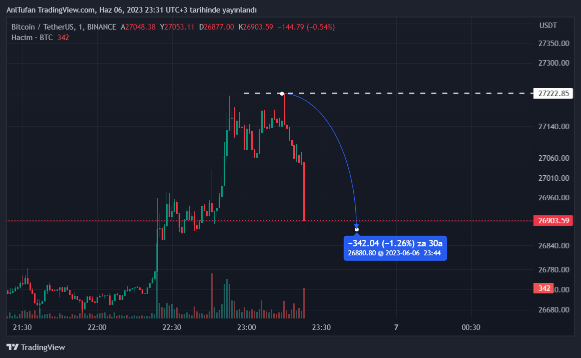 Dün özelinde Binance ve CEO CZ’ye dava açan SEC, bir süre daha Binance ile uğraşmaya devam edebilir. Son gelen bu haber neticesinde lider kripto para birimi Bitcoin (BTC) yüzde 1’den fazla değer kaybetti.