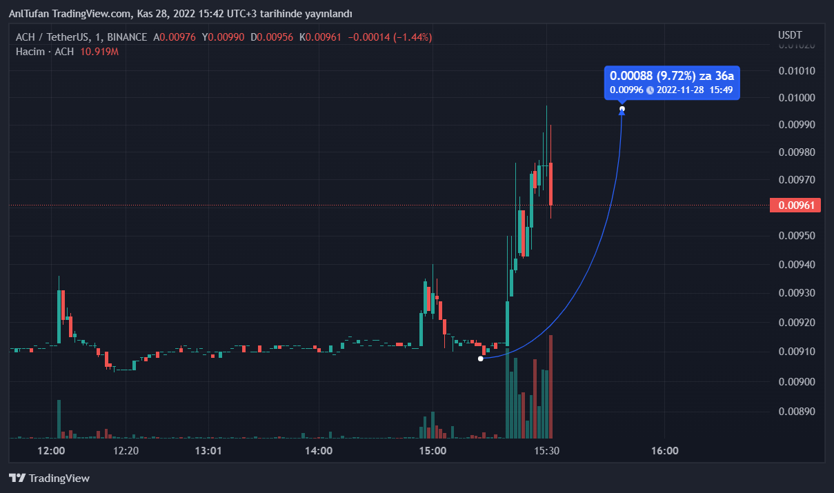 Arbitrum’un bu yaptığı paylaşımın ardından popüler altcoin ACH’nin yükselişe geçtiği görülüyor. Dakikalar içerisinde yüzde 10’a yakın değer kazanan ACH, yatırımcıların dikkatini çekti.