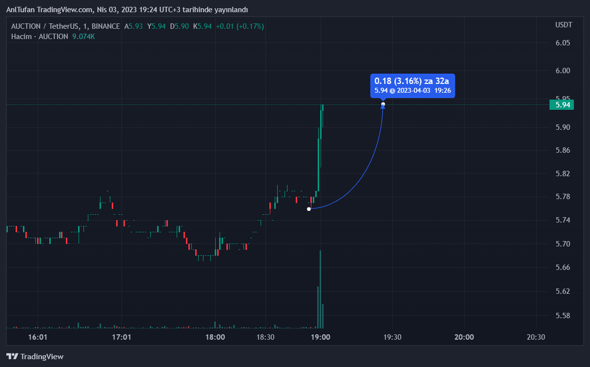 Bounce Finance’ın son tweet’inin ardından yüzde 3 oranında değer kazanmayı başaran AUCTION, ilerleyen saatlerde yükselişlerine devam edebilecek mi? merak konusu..