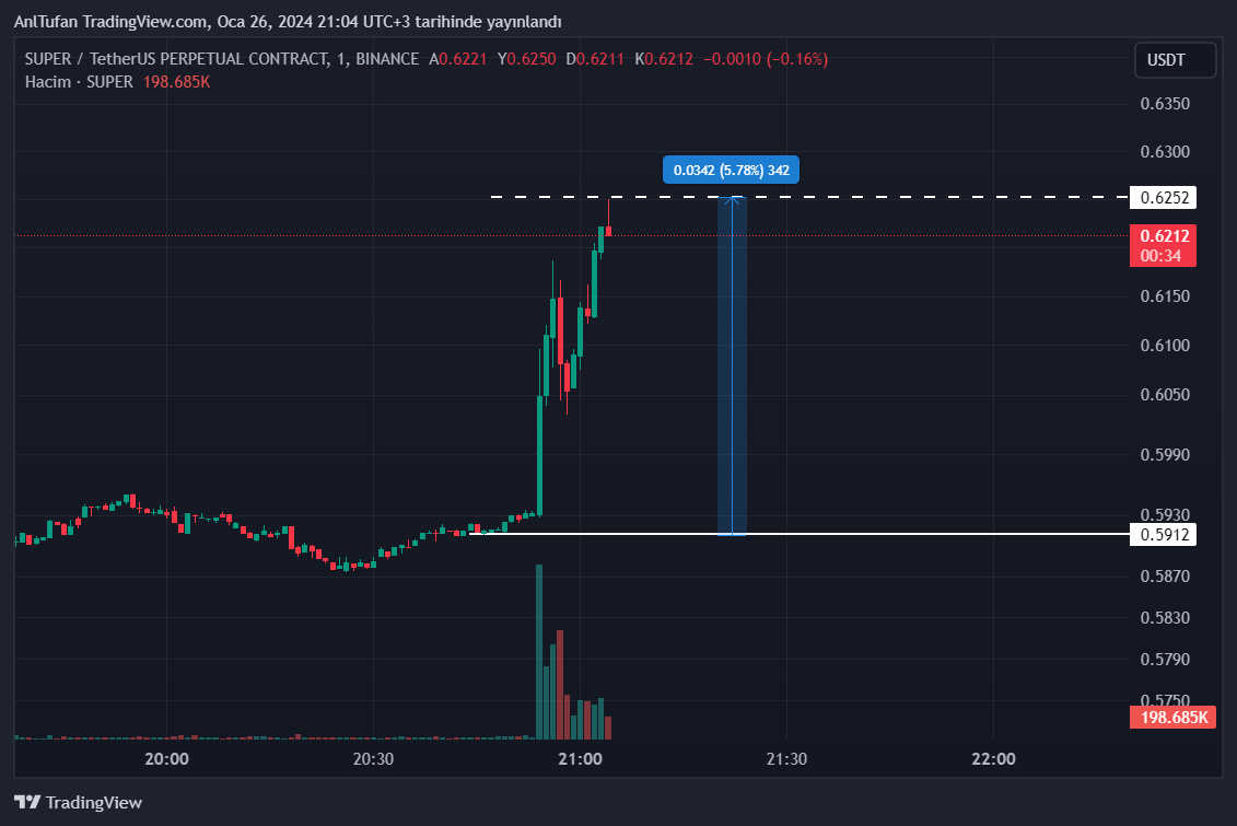 SuperVerse ekibinin 30 Ocak tarihini işaret etmesi ile birlikte SUPER’de artışlar yaşanmaya başladı. SUPER tweet sonrası birkaç dakika içerisinde %5’den fazla bir yükseliş yaşadı.