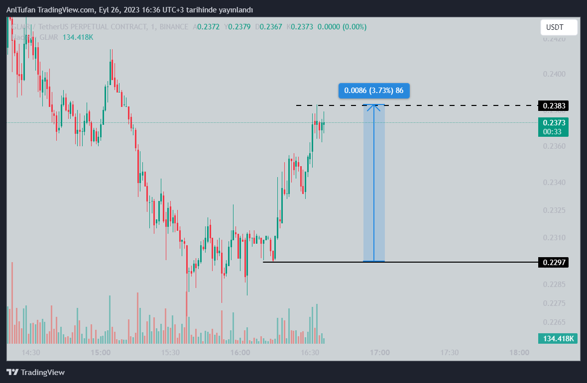 TSİ 16.15’de gelen bu tweet’in ardından 0.2297 dolar seviyesinden 0.2383’e kadar yükselen GLMR, kısa bir süre içerisinde yüzde 4’e yakın bir artış yaşadı.