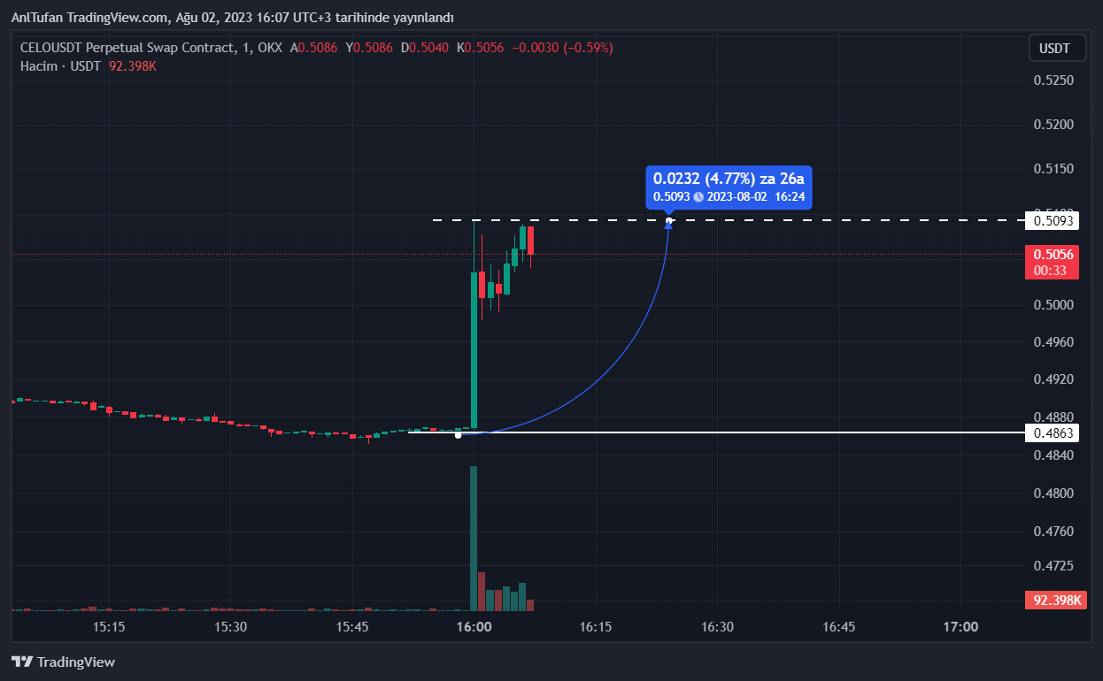 Bu gelişme ile birlikte CELO isimli altcoin‘in yukarı yönlü hareketler sergilediği görüldü. CELO Bitcoin‘deki düşüşlere rağmen son dakikalarda yüzde 5’e yakın bir yükseliş yaşadı.