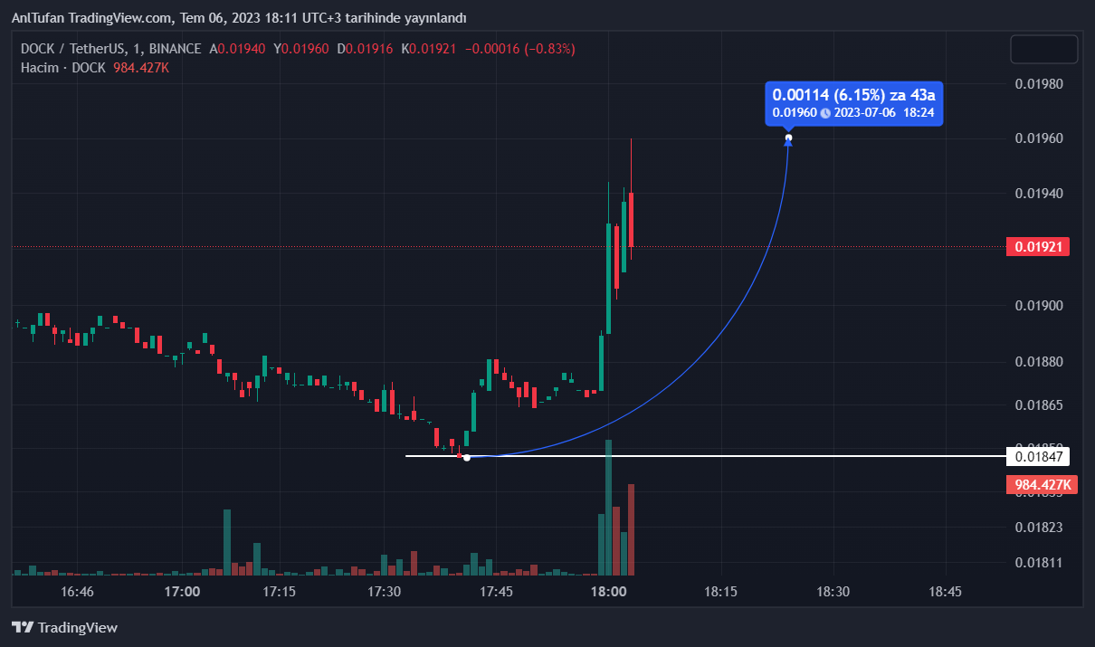 DOCK isimli altcoin son dakikalarda Bitcoin’in düşüşlerine rağmen Dock Network ekibinin yaptığı paylaşım ile birlikte yüzde 6 oranında bir yükseliş yaşamayı başardı.