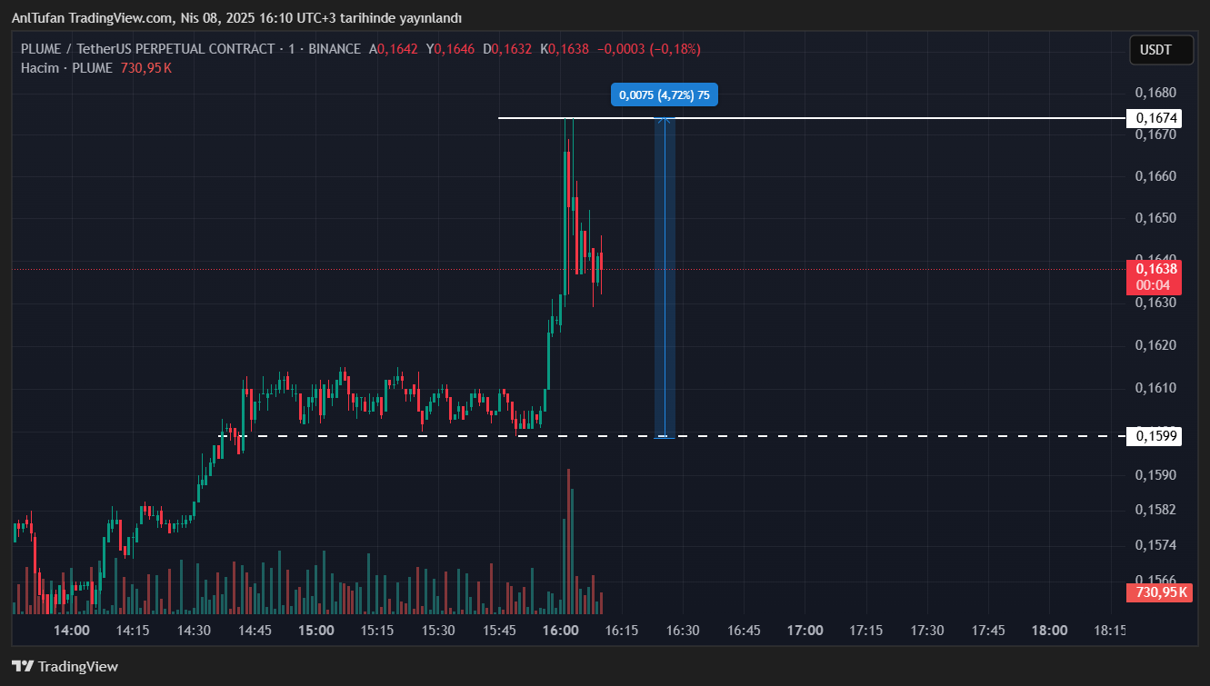 Plume Network, varlık yöneticisinin yaptığı yatırımın miktarını açıklamadı. Yine de bu son yatırım duyurusu PLUME’u olumlu etkiledi. PLUME son dakikalarda yatırım duyurusu ile %5’lik bir sıçrama gerçekleştirdi.