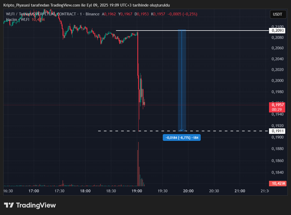 Son gelen haberler neticesinde ise Binance’de de listelenmiş bir altcoin olan WLFI, ani bir geri çekilme yaşadı. WLFI, Eric Trump’ın çıkarılması sonrası -%8 oranında düşüş gerçekleştirdi.