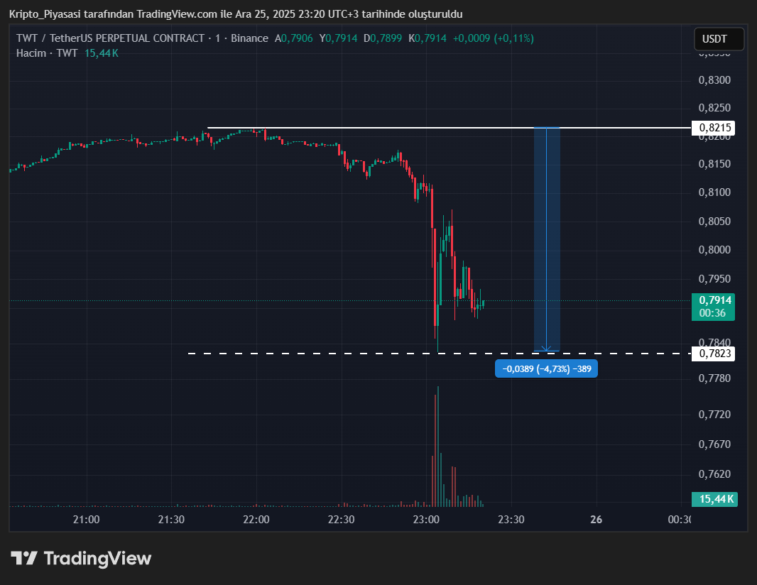 Binance kurucusu CZ‘nin desteklediği bir altcoin olan TWT, son dakikalarda ortalama -%5’lik ani bir düşüş yaşadı. Trust Wallet ekibi bu son gelişme hakkında resmi bir duyuru paylaşmadı.