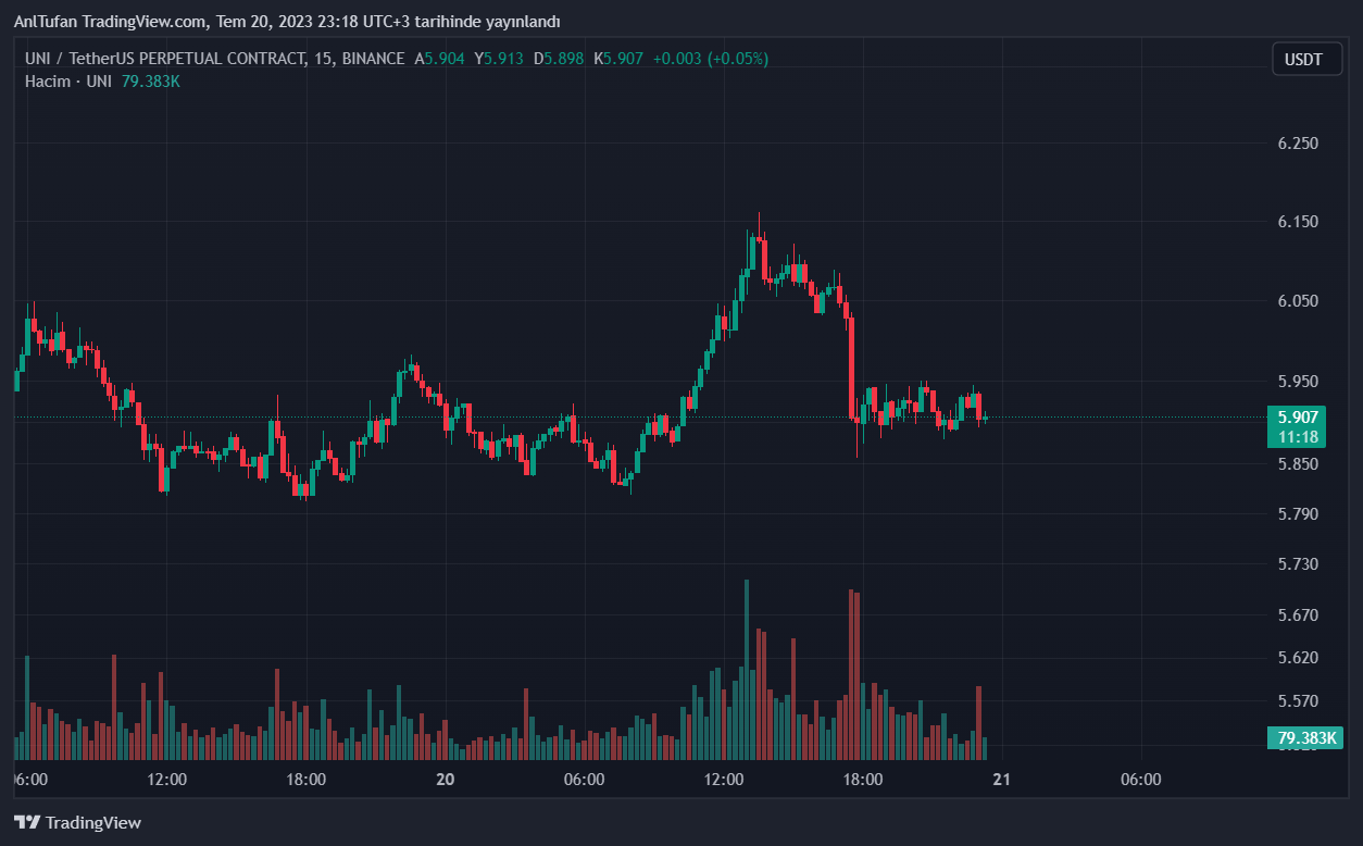 UniSwap (UNI) haberimizin yazıldığı esnada 5.90 dolar seviyelerinden işlem görüyor. Popüler altcoin UNI, bu son dakikalarda yaşanan hack gelişmesine kayda değer herhangi bir tepki vermedi.