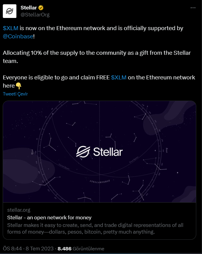 Şuan itibariyle Stellar’ın resmi Twitter hesabının hacklendiği görülüyor. Hackerler “bedava XLM” vaadi ile kripto yatırımcılarının varlıklarına göz koymuş durumda.