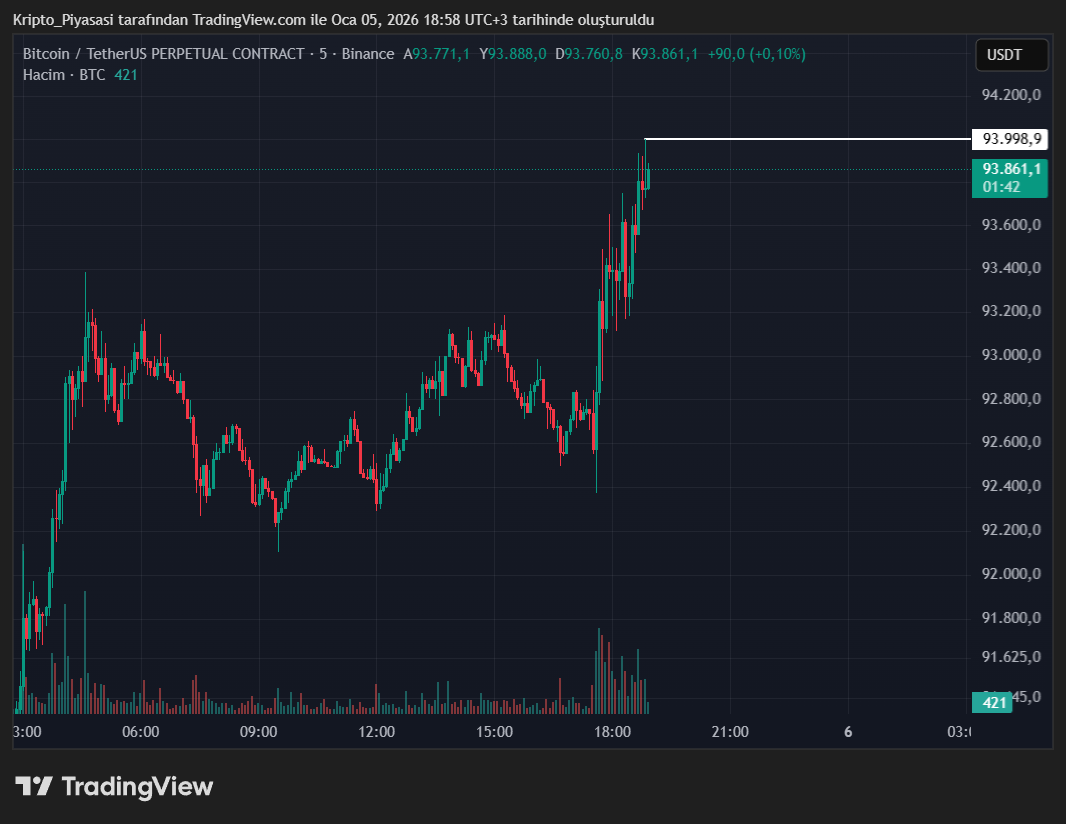 Bir süredir ise 85 bin – 90 bin dolar aralığında akümüle olan BTC, son dakikalarda ise 94 bin dolar seviyesini gördü. Bitcoin en son 94 bin dolara aralık ayının başlarında ulaşmıştı.