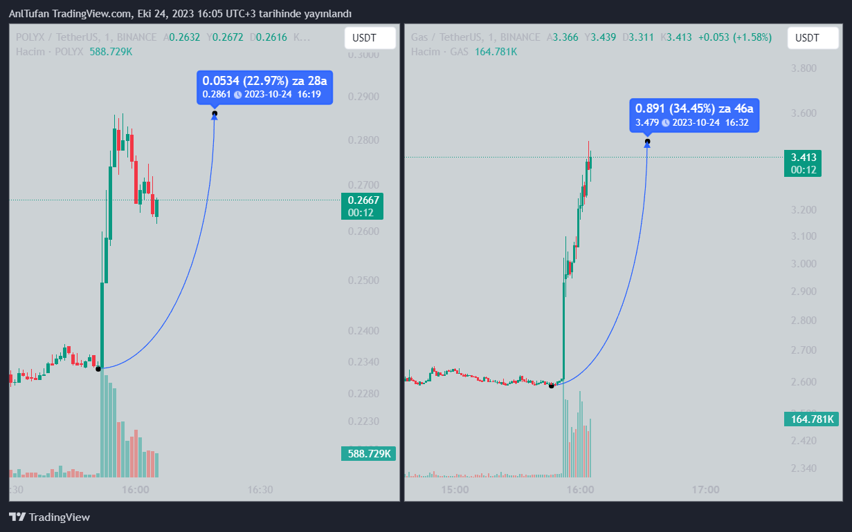POLYX isimli altcoin bu duyuru sonrasında %23’lük bir yükseliş yaşarken, GAS’daki yükselişlerin %35’e ulaştığı görüldü.