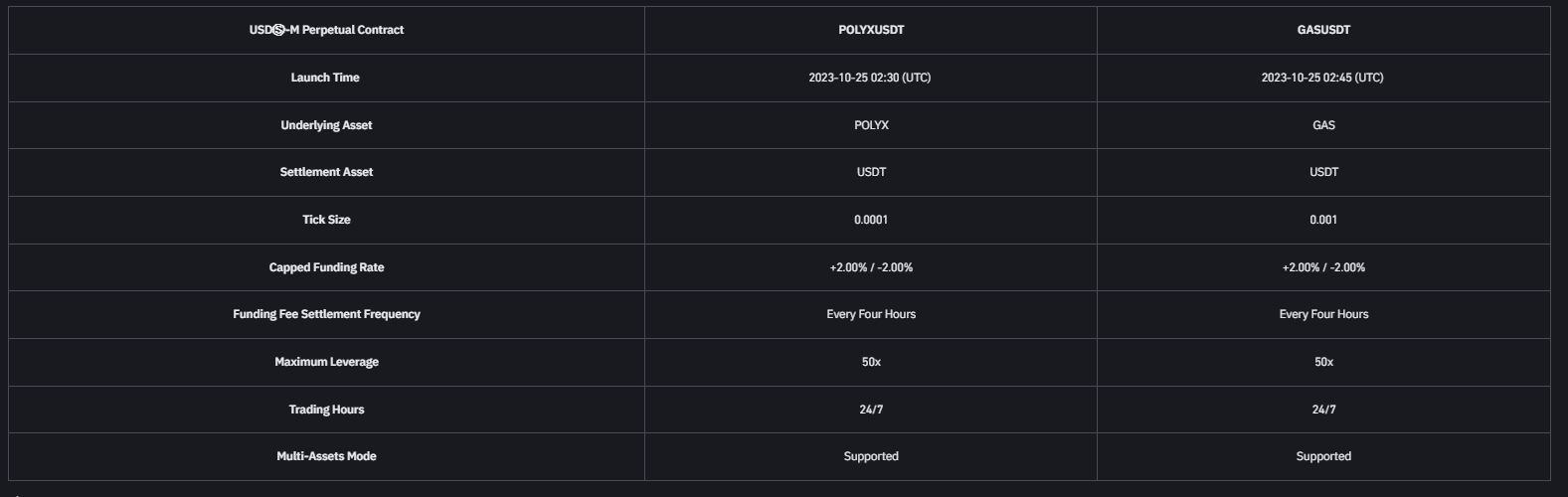 Son dakikalarda gelen bilgilere göre işlem hacmine göre dünyanın en büyük kripto para borsası Binance, GAS ve POLYX isimli 2 altcoin‘i 50 kata kadar kaldıraçla vadeli piyasada listeliyor.