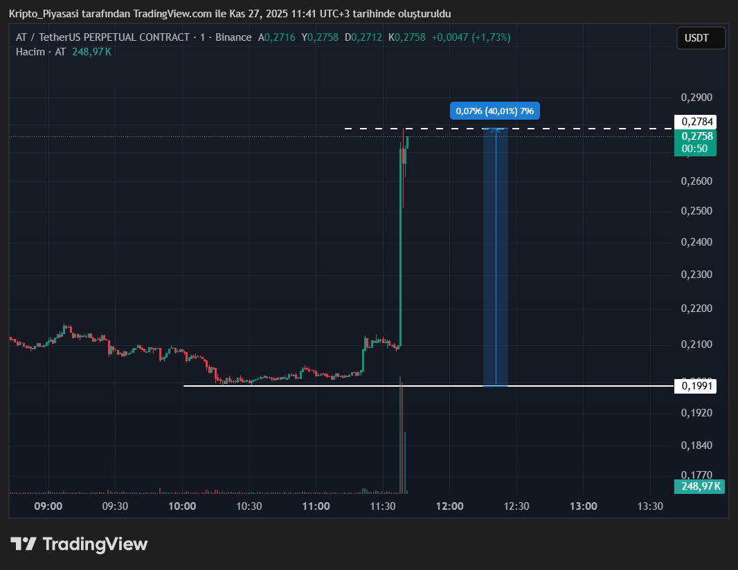 Binance’in bu son duyurusu ile birlikte AT fiyatında devasa bir yükseliş oldu. Dakikalar içerisinde %40 oranında değer kazanan AT, tüm dikkatleri üzerine çekti.