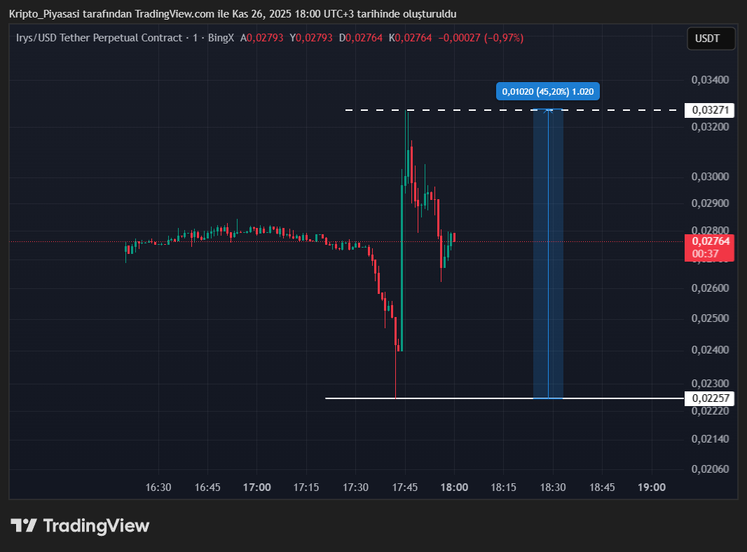 Bu listeleme duyurusu sonrasında IRYS fiyatında volatil hareketler yaşandı. İlk etapta aşağı yönlü sert bir iğne atan IRYS, sonrasında %50’ye yakın bir ralli gerçekleştirdi.