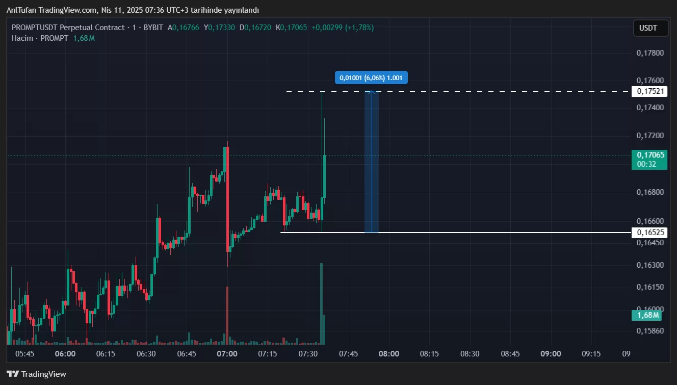 Bu son paylaşılan duyuru ile birlikte PROMPT fiyatında ani bir sıçramanın yaşandığı görüldü. Dakikalar içerisinde %6 oranında değer kazanmayı başaran, dikkatleri üzerine çekti.