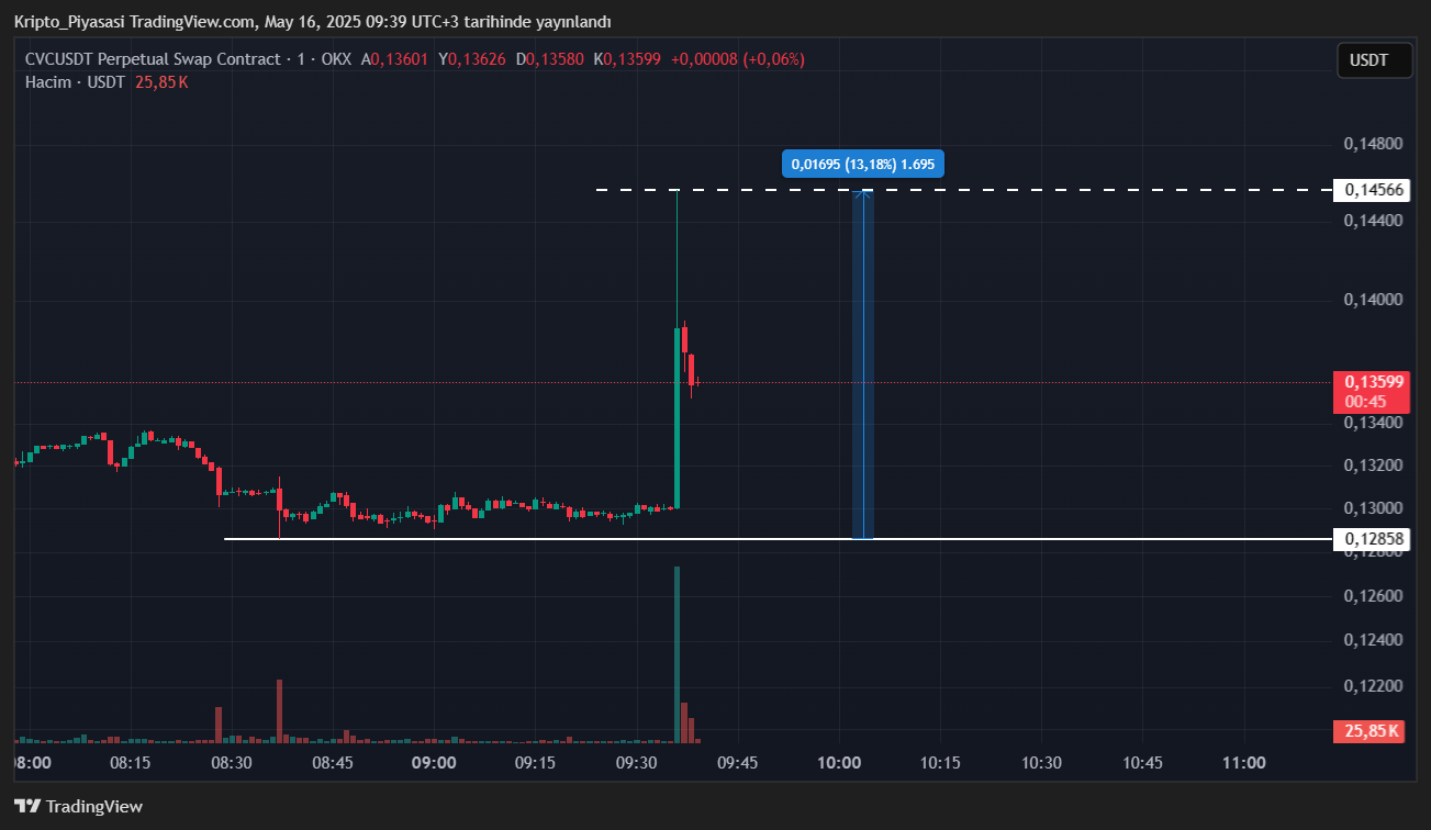 Bu son vadeli listeleme gelişmesinin ardından CVC fiyatında yükselişler meydana geldi. Dakikalar içerisinde %13 oranında değer kazanan CVC, dikkatleri üzerine çekti.