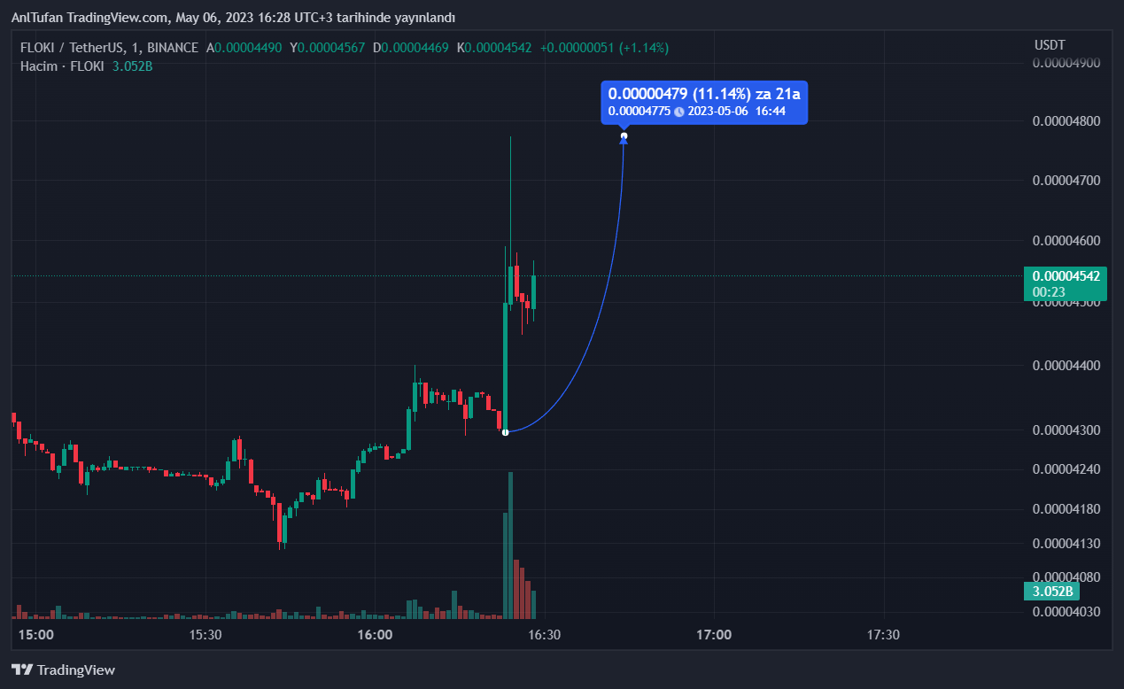 Her ne kadar FLOKI son duyuru ile yükseliş yaşamış olsa da, Binance bu adımı atacağını dün paylaşmış olduğu için bu yükseliş hareketinin çok uzun sürmesi beklenmemekte.