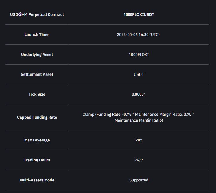 “1000FLOKIUSDT Sürekli Sözleşmesi hakkında daha fazla ayrıntı aşağıdaki tabloda bulunabilir:”