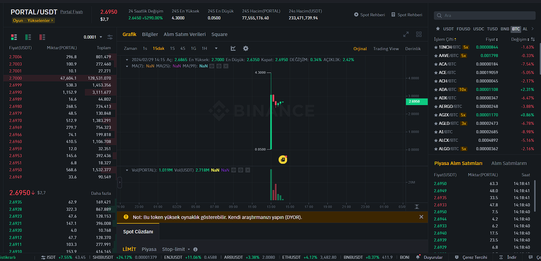 Binance PORTAL vadeli listelemesi hakkında paylaştığı duyuruda şu sözlere yer verdi: