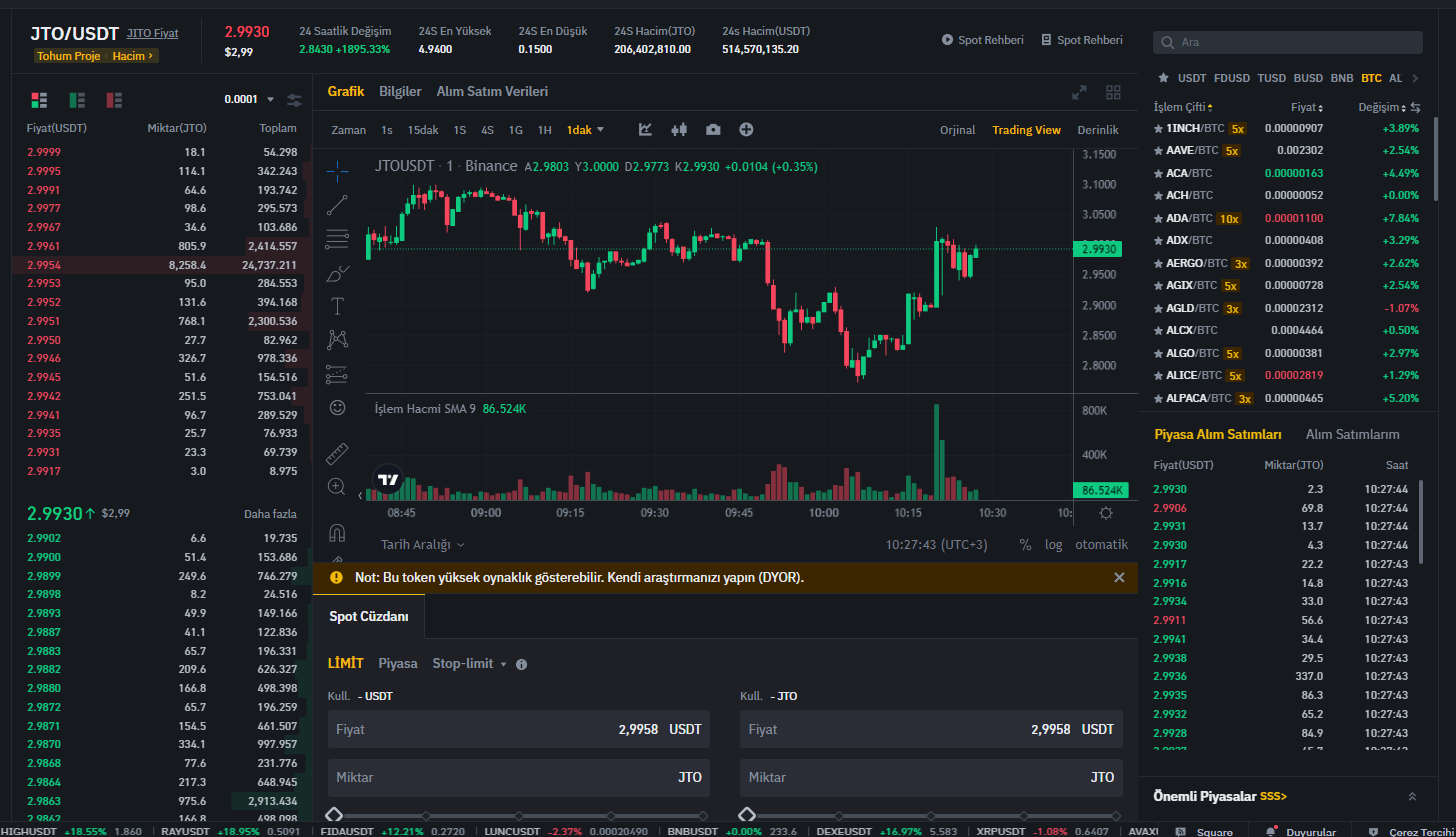 Her ne kadar Binance’in JTO’yu vadeli piyasada da listeleyeceğini duyurması alım iştahını artırsa da, JTO çok büyük bir sıçrama gerçekleştirmedi.