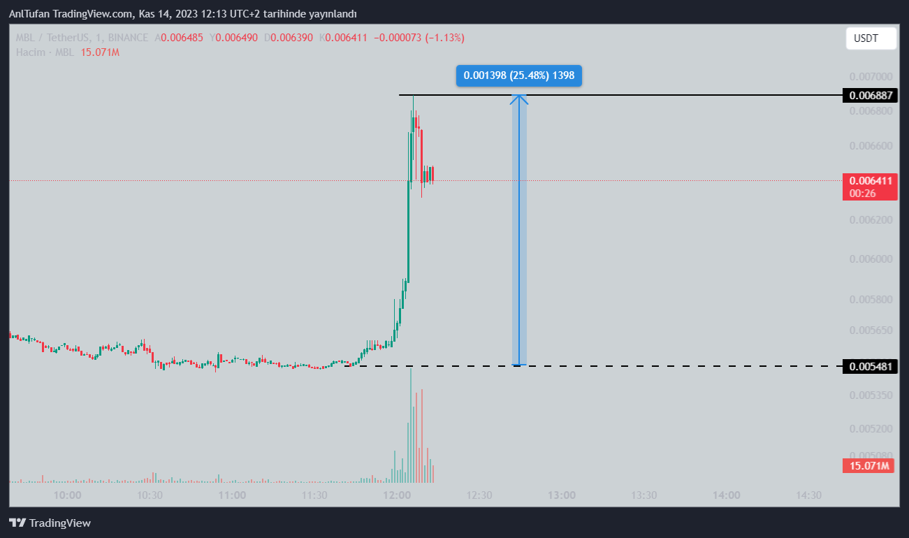 Dakikalar içerisinde %25’lik bir artış yaşamayı başaran MBL, birçok kripto para yatırımcısının dikkatini üzerine çekti.