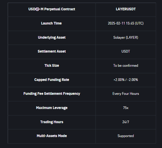 Son dakikalarda paylaşılan bilgilere göre dev kripto para borsası Binance, Solayer (LAYER) isimli altcoin‘i vadeli piyasada listeliyor. Bugün itibariyle Binance’in yanı sıra birçok kripto para borsası da Solayer’ı (LAYER) spot ve vadeli piyasada listelemişti.