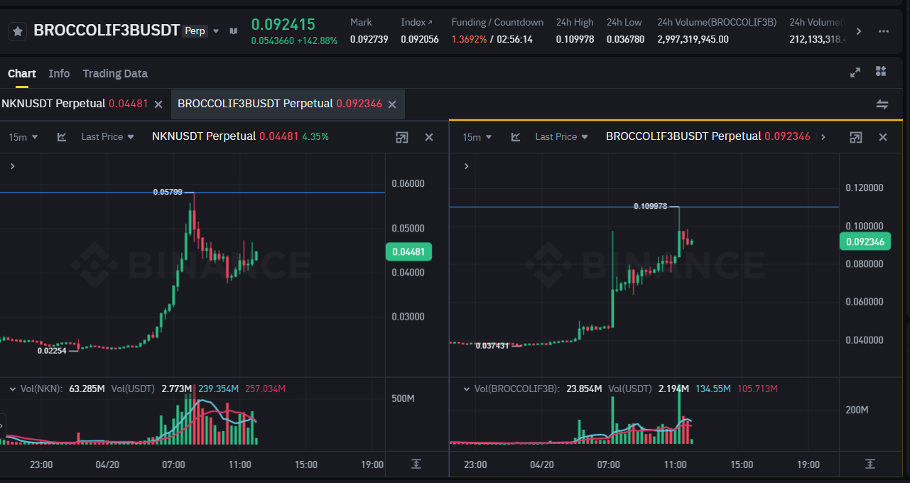 Bugünün yıldız altcoin’lerinin NKN ve BROCCOLIF3B olduğu görülüyor. 2 altcoin’de hafta sonu özelinde 3 katlık artış yaşamayı başardı. NKN 48 saat içerisinde %210’luk yükseliş yaşarken, BROCCOLIF3B’nin ise %200 oranında değer kazandığı gözlemlendi.