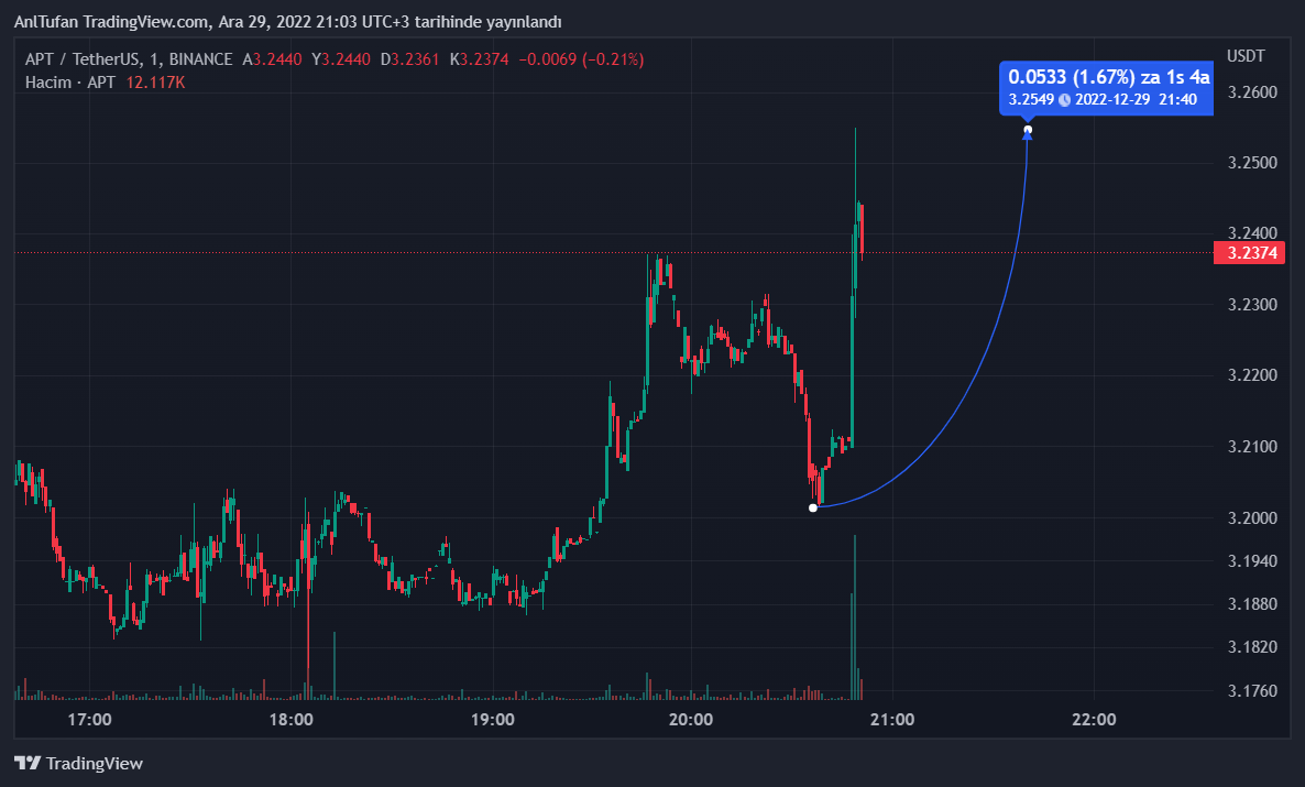 Aptos ekibinden gelecek duyurunun belirsizliğinden ötürü her ne kadar APT devasa bir yükseliş yaşayamamış olsa da, dakikalar içerisinde yüzde 2’ye yakın değer kazandı.