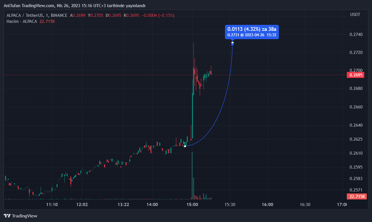 Bu duyuru metni sonrasında dakikalar içerisinde yüzde 4’ten fazla yükseliş yaşayan ALPACA, yükselişlerine devam edebilecek mi? merak konusu..