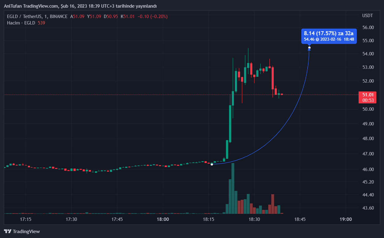 Dünyanın en büyük kripto para borsası Binance‘de de listelenmiş olan EGLD, MultiverseX ekibinin yaptığı bu anlaşma sonrasında yüzde 15’den fazla değer kazandı.