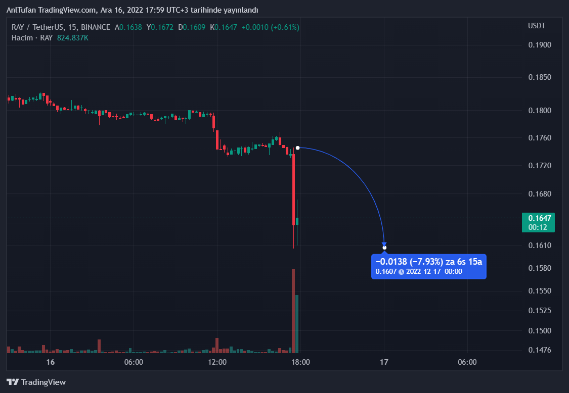 Solana protokolü üzerindeki RAY, geçtiğimiz süreçte SOL‘un düşüşleri birlikte ciddi değer kaybı yaşamıştı. Son meydana gelen saldırı yine RAY’ın değer kaybetmesine neden oldu.