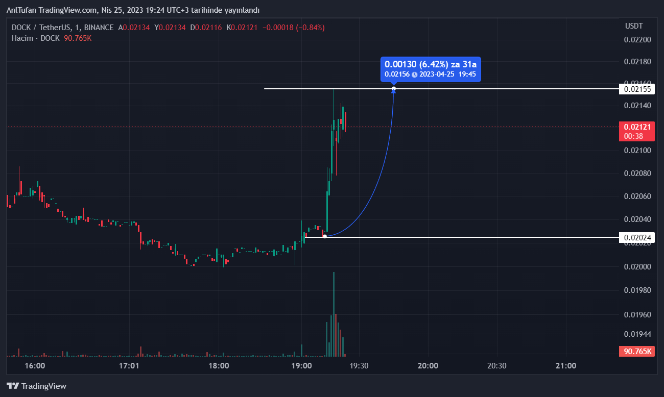 Başarılı bir veri sağlayıcısı olan CoinMarketCap’in piyasa değerinde 666. sırada yer alan DOCK, Dock Network ekibinin yukarıda yer alan paylaşımı sonrasında yükselişe geçmeyi başardı.