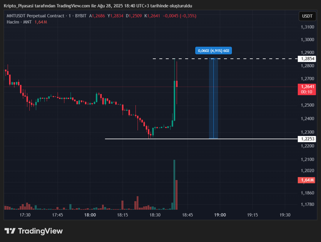 Bu son gelişme neticesinde Mantle (MNT) fiyatında ani bir yükseliş yaşandı. Ortalama %5’lik bir sırama yapan MNT, dikkatleri üzerine çekti.