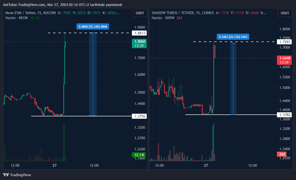 Coinbase’in listeleme hamlesi ile birlikte bu altcoin’lerin yükselişe geçtiği görüldü. SHDW %25 oranında değer kazanırken, NEON ise %35 oranında yükseliş yaşadı.