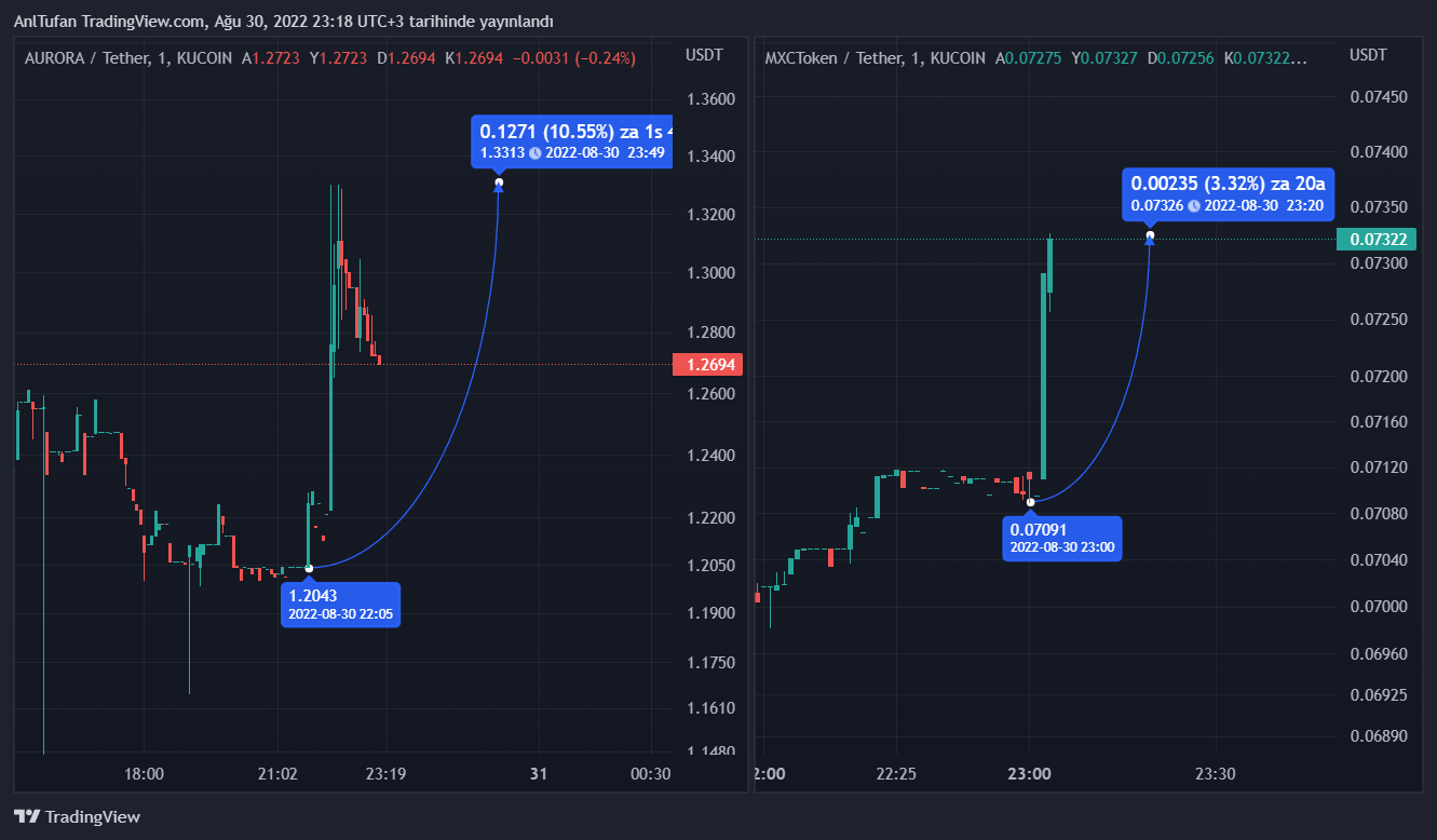 MXC’de piyasa değeri olarak daha küçük AURORA, çok daha büyük bir yükseliş yaşamayı başardı. Yarın itibariyle bu 2 altcoin’in ticareti Coinbase borsasında başlayacak.