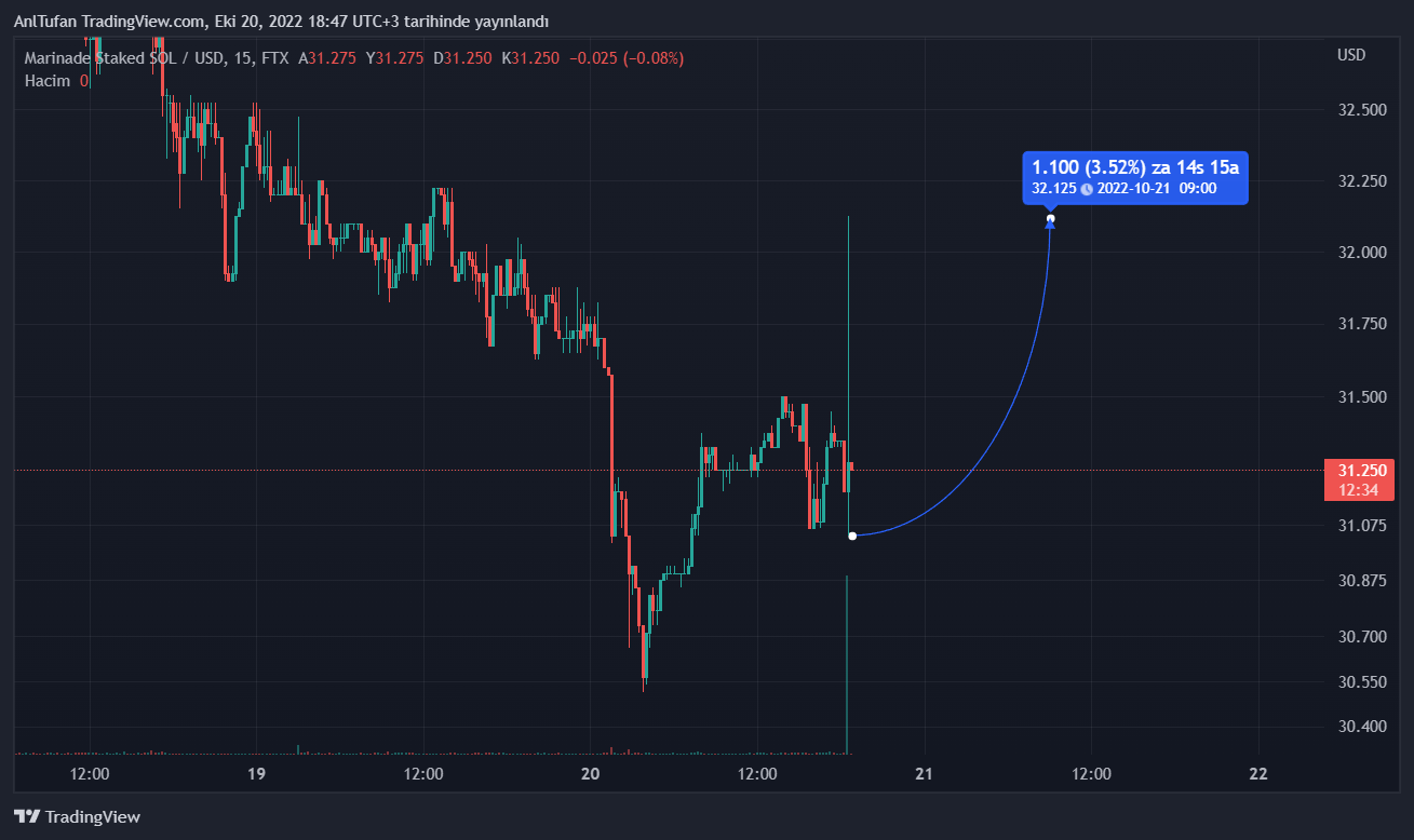 Marinade’ye (MNDE) baktığımızda ise şuan aktif olarak ticaret edilebilecek bir platformda bulunmadığı için bir fiyat hareketi görünmüyor.