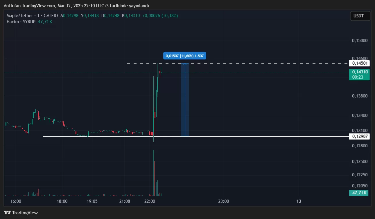 Düşük işlem hacmine sahip bir altcoin olan Maple Finance (SYRUP), bu son gelen duyuru ile yükselişe geçti. SYRUP, Coinbase listeleme hamlesi sonrasında %11 oranında değer kazandı.