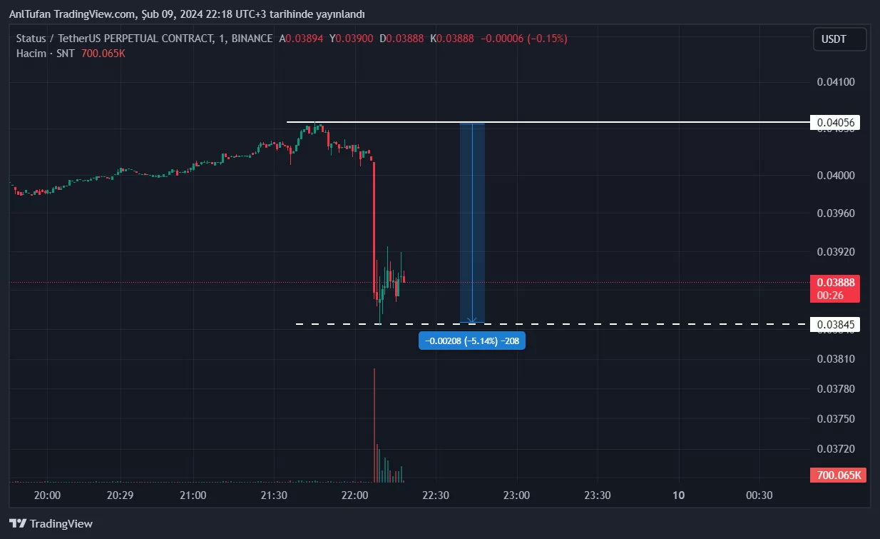 Status (SNT) isimli altcoin son delist duyurusu ile birlikte %5’lik bir geri çekilme yaşadı.