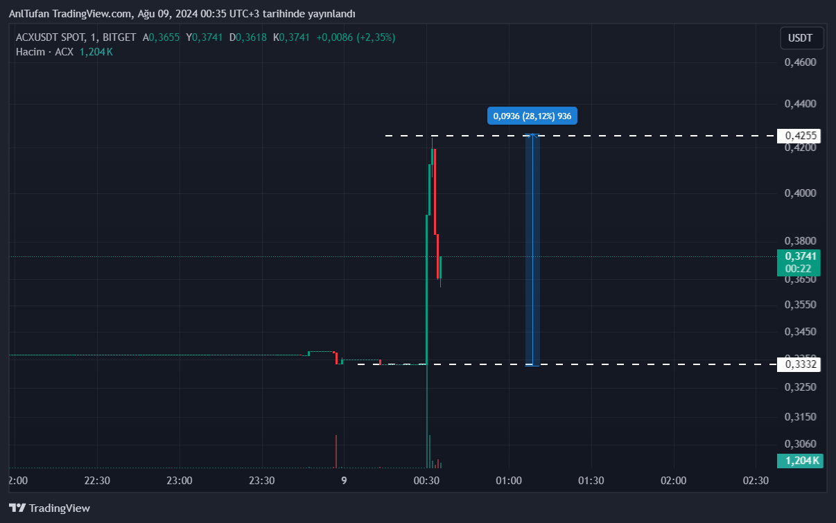 Son gelen listeleme kararı ile birlikte ACX fiyatında ani yükselişler meydana geldi. %28’lik bir artış yaşayan ACX, kripto yatırımcılarının dikkatini çekti.