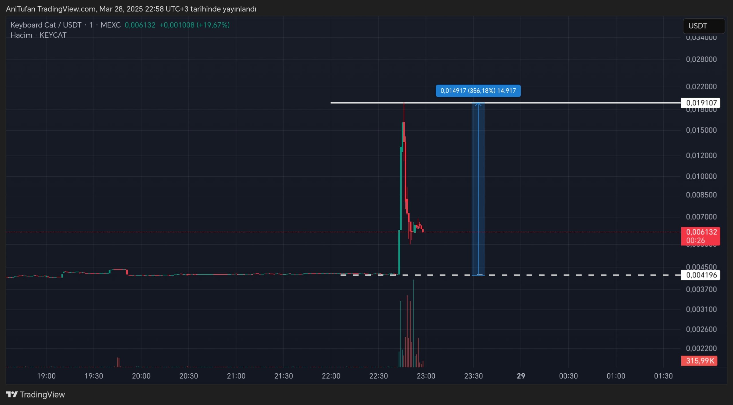 Bu son listeleme duyurusu ile birlikte KEYCAT fiyatında dev yükselişlerin meydana geldiği görüldü. Dakikalar içerisinde %300’den fazla yükselen KEYCAT, değerini dörde katladı. Sürecin ilerlemesiyle birlikte KEYCAT’in yükselişlerinin önemli bir kısmını kaybettiği görüldü.