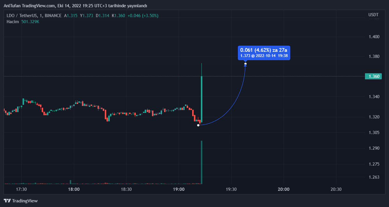Binance borsasında listelenmiş olmasından mütevellit yüksek bir piyasa değerine sahip olan Lido DAO (LDO), Coinbase’in duyurusunun ardından sadece yüzde 5’e yakın bir yükseliş yaşadı.
