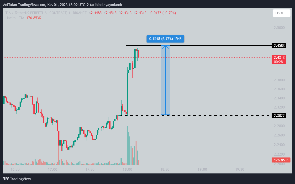 Coinbase’in listeleme duyurusu sonrasında son dakikalarda TIA’nın %6’lık bir yükseliş gerçekleştirdiği görüldü. Bu yükseliş trendinin devam etmesi ise çok mümkün gözükmüyor.