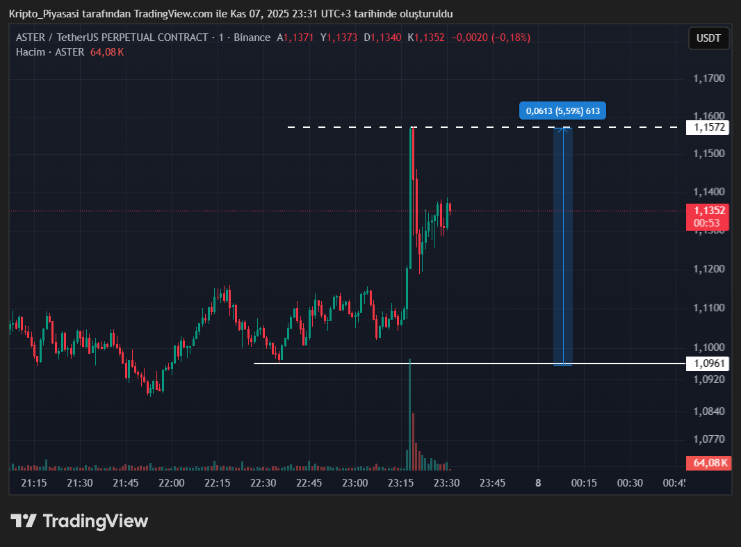 Bu son gelişme doğrultusunda ASTER fiyatında ani bir yükseliş yaşandı. Listeleme duyurusu ile %5 oranında artış yaşayan ASTER, ilerleyen dakikalarda volatil hareketlerine devam edebilir.