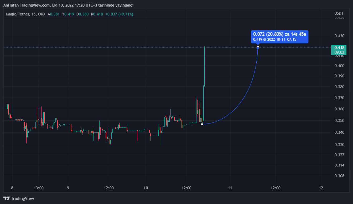 Birinci seviye borsalar anlamında MEXC, LBank ve OKX‘de yer alan MAGIC, FTX listeleme duyurusu sonrasında yüzde 20 oranında yükseliş yaşamış durumda.