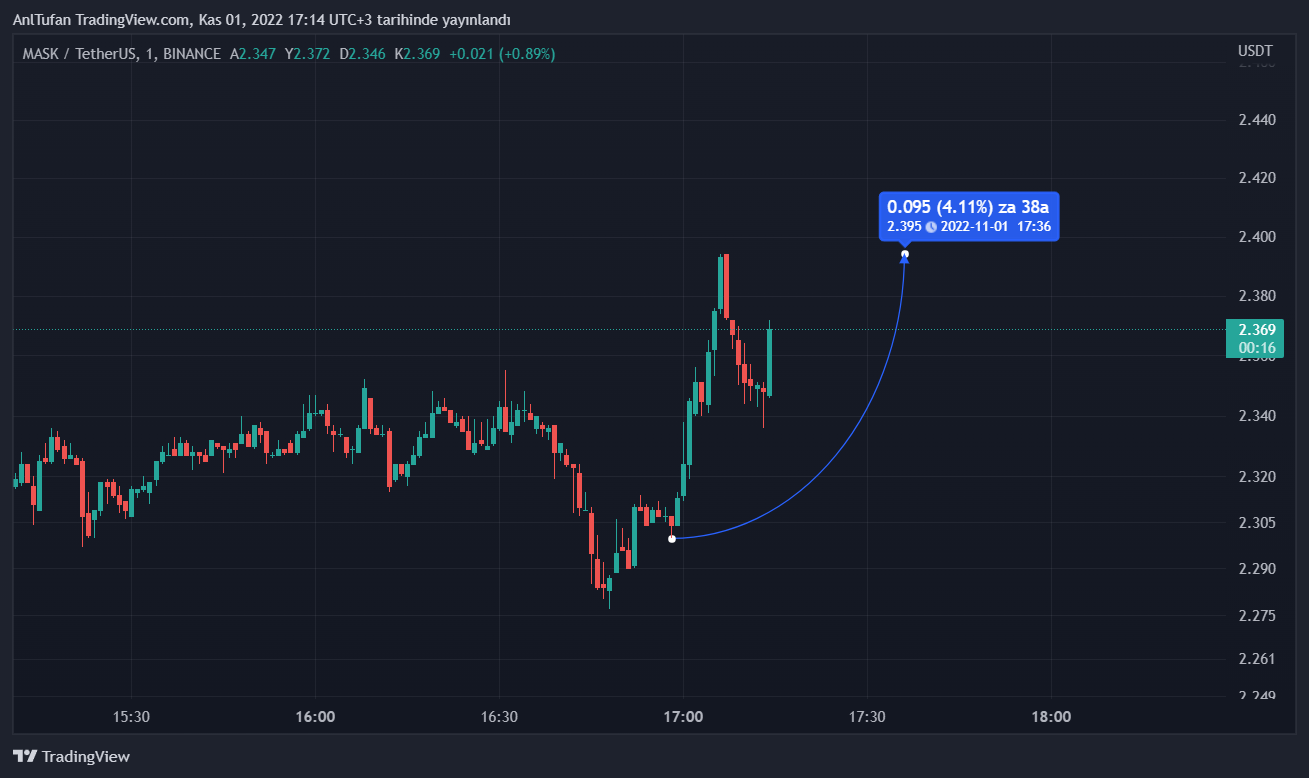Bir süredir ciddi miktarda yükseliş yaşayan Mask Network, FTX’in bu hamlesi sonrasında tekrardan yukarı yönlü hamleler sergilemeye başlamış durumda.